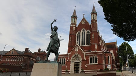 | This Friday, 19th May 2023, is the Feast of the Dedication of our Cathedral Church of St. John the Evangelist here in Portsmouth. It is in fact the 141st anniversary of the formation of our Diocese of Portsmouth, for it was on that day in 1882 that Pope Leo XIII created the Diocese of Portsmouth from the western portion of the Diocese of Southwark (founded in 1850). Southwark had become too large for one bishop, extending as it did from London to Bournemouth, and from Oxford to Dover and over to the Channel Islands. The obvious place for the Cathedral of our Diocese and the curia was Winchester, but the Ecclesiastical Titles Act did not allow a Catholic diocese to take the same name as an Anglican one. So, plans were drawn up to establish the new see at Southampton, with St. Joseph’s Bugle Street as the pro-Cathedral. However, the construction of a large parish church in the middle of Portsmouth had begun, and so it was decided to make that the future Cathedral instead. Bishop John Vertue (1826–1900) was the first bishop of the new Diocese. He was consecrated by Cardinal Manning on 25th July 1882 and on 10th August 1882, the new Cathedral opened. Bishop Vertue had c. 70 priests and 40 missions. He was succeeded in 1900 by Bishop John Cahill, his Vicar General, and during his time, a number of religious orders established houses in the Diocese. Thus in 1901, Benedictines from Solesmes settled on the Isle of Wight at Quarr, and Benedictine nuns at Ryde. Benedictine monks from St. Edmund’s in Douai, France, arrived in Upper Woolhampton shortly after this and in 1903 they founded Douai Abbey. This Friday, let us thank God for the gift of our Cathedral and our Diocese, and please pray for us all and, not least, for me too.  |
