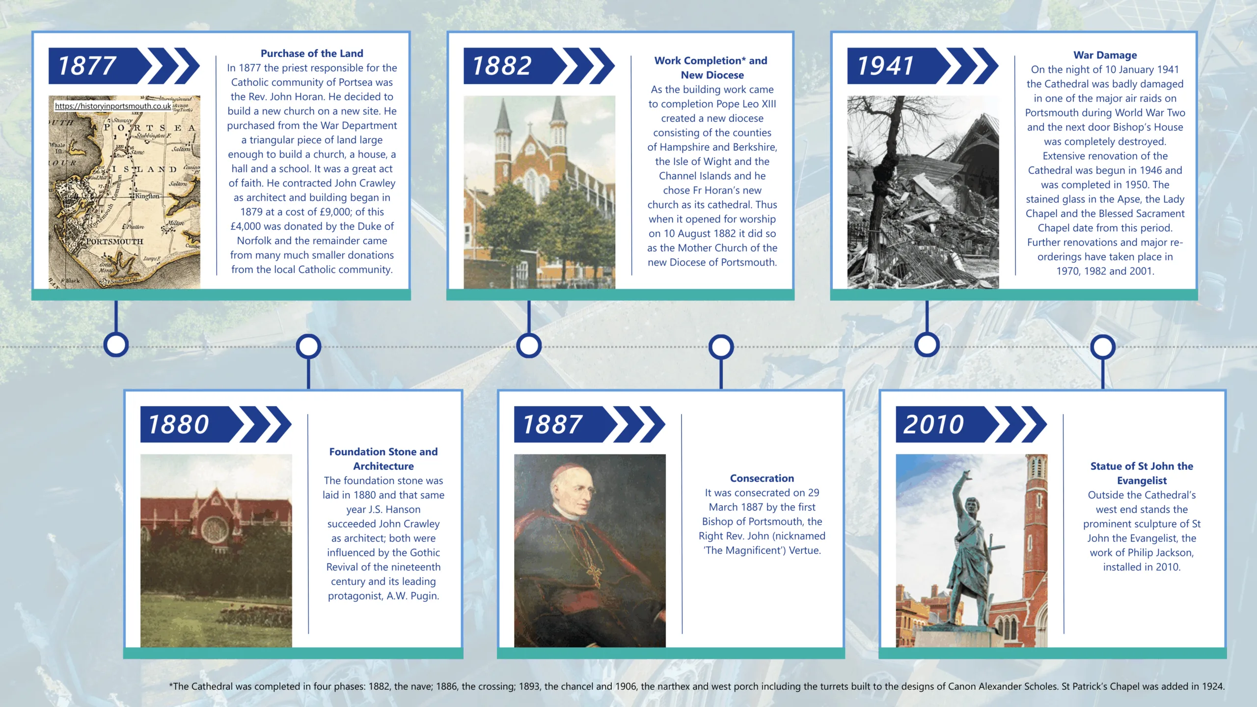 St John’s Cathedral in Portsmouth is the Mother Church of the Catholic Diocese of Portsmouth. The Cathedral was built in 1882 to provide for the steadily increasing number of Catholics living in Portsmouth.