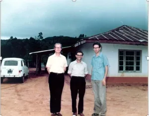 1975 April - Michael Peters, Bishop Worlock and Ron Hishon - at Bambui Seminary