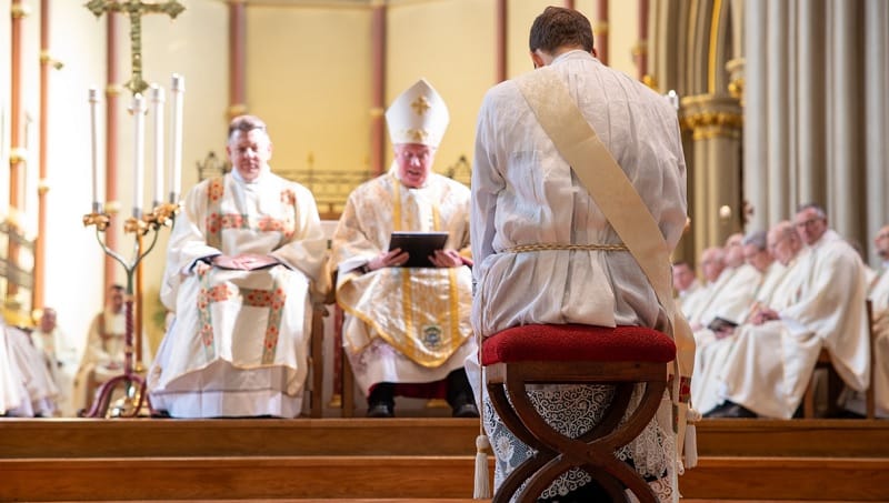 | It was a great joy last Saturday to ordain Rev. Edward Hauschild to the priesthood, with many priest concelebrants present and people from all over. Fr. Edward’s parents and close family were there and many friends from different stages of his life. Also taking part were some of our seminarians, Fr. Stephen Wang, Rector of the English College Rome, Fr. Joseph Corola SJ from the Gregorian University, Canon Dominic and the Knights of St. Columba from Jersey, as well as brothers and sisters from the other Christian communities, including Revs. Maureen Roberts, Sarah Hall and Philippa White. Fr. Edward, who said his First Mass in Chandlers Ford where for many years he was an altar server, now returns to Jersey as assistant priest. Here is an extract from the sermon I preached. It is hard to think of a more fitting day for the ordination of a priest that this feast of the Annunciation of the Lord. This is the day that changed the world, when God became man and humans became Divine. This is the Good News of salvation a priest is ordained to proclaim. But this feast invariably falls in Lent or in Passiontide, reminding us that the One conceived in the Virgin’s womb is the only Person in history born not to live but to die. He has come to do God’s will. He has come to lay down His life for us in perfect love. He has come to offer Himself to the Father for us and for our salvation. Jesus Christ is humanity’s High Priest and the offering He makes on the Cross is Himself, His Flesh and Blood. He the Priest, He is the Victim. This is why in Christianity to be a priest means to be a victim. We see this also in Mary. Her yes to the angel changed everything. She lived a lifetime of maternal self-offering, bearing, supporting, following Her Son and standing at the foot of the Cross, She united Her self-offering to His supreme sacrifice. In this way Mary too is a perfect icon of the priesthood, shewing what all Christians are daily called to do. These days when people think of being a priest, they often imagine that celibacy must be the hardest thing. It’s true; it does have its moments. But of the promises we make, obedience is surely the more challenging. Edward, in a moment you will promise respect and obedience to me, as your Bishop, and to my successors. You will become the Bishop’s Man. This is a profound undertaking for which I thank you. Obedience, from ob-audire, means to listen to. You are promising to listen to what God wants of you, not only interiorly through your own prayer and reflection, but externally through Christ’s Church and what legitimate authority asks of you. This is countercultural, for we live in a world that prizes individualism, innovation and initiative. Yet here again, the Blessed Mother is a perfect example. She shews us how to be obedient. For every day She listened out for God’s Word; She welcomed It when It came, believed It, pondered It and put It into practice: Let what you have said be done to me. In the Catholic Church, no presbyter can ever be a lone-ranger, someone who does their own thing. So Edward, I ask you to stay close to the Bishop, to make it your priority to know his mind and will, and generously to collaborate with him in the service of the Church. We wish him well in his Ministry. |