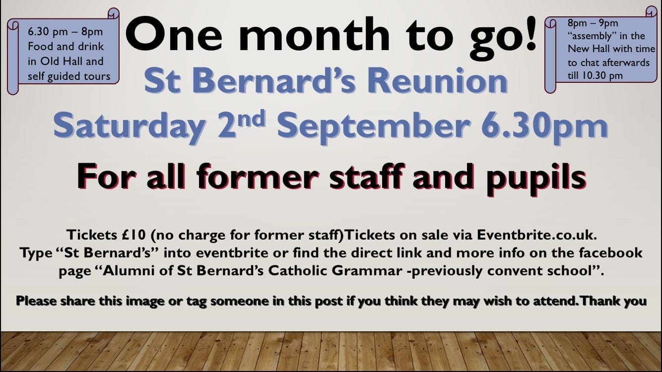 For the first time since the Pandemic, St. Bernard’s Catholic Grammar School previously Convent school, in Slough is hosting a reunion on Saturday September 2nd at 6:30pm for all past pupils and staff. More details are available on their Facebook page Alumni of St. Bernard’s Catholic Grammar -previously Convent School or you can register at Eventbrite: 2023 St. Bernard’s Catholic Grammar School Alumni Reunion.